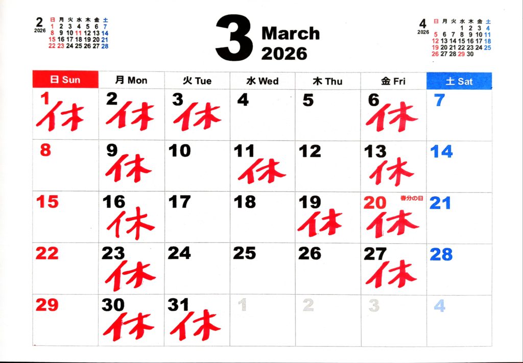 > 2026年3月の営業カレンダーです!